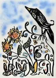 Medium: Hand embellished (acrylic, acrylic ink, pigment sticks, spray paint) giclée on paper, signed by the artist.