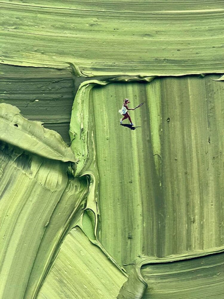 Werner Bronkhorst (born 2001 in Pretoria, South Africa) is a contemporary artist now based in Sydney, Australia. He works in two main styles: highly textured, sculptural abstract backgrounds with hyper‑realistic miniature figures (skiers, surfers, people, etc.), and charcoal (or drawing) works of cars overlaid with bold text.