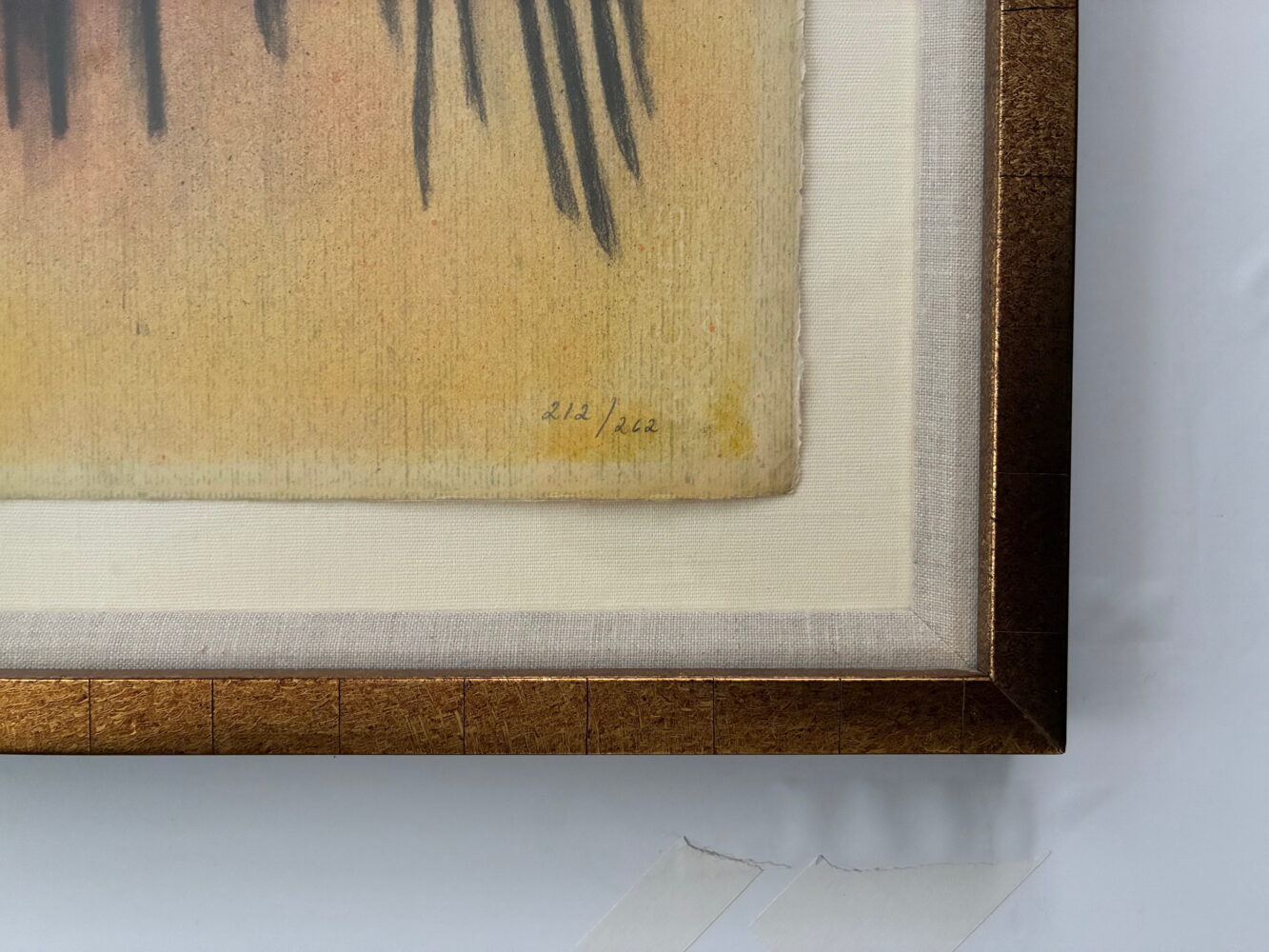 color lithograph on wove paper, nicely framed with linen liner and gold frame, excellent condition with fresh color