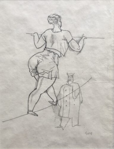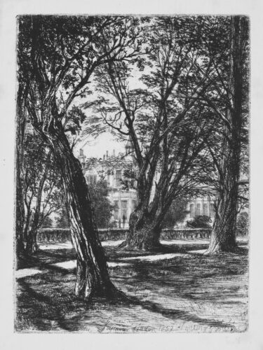 Signed with the artist’s monogram and dated in pencil. A fine impression printed on grey paper, with wide margins. A few impressions of this image are printed on tan paper.